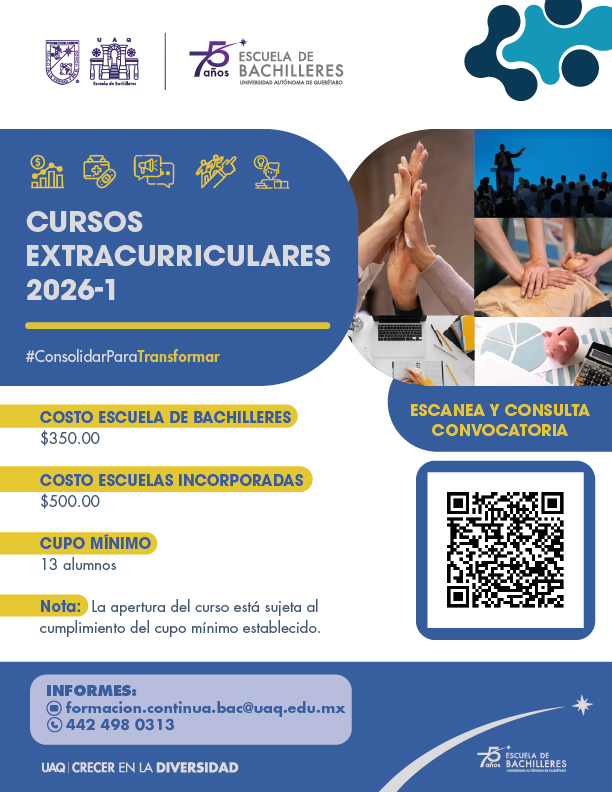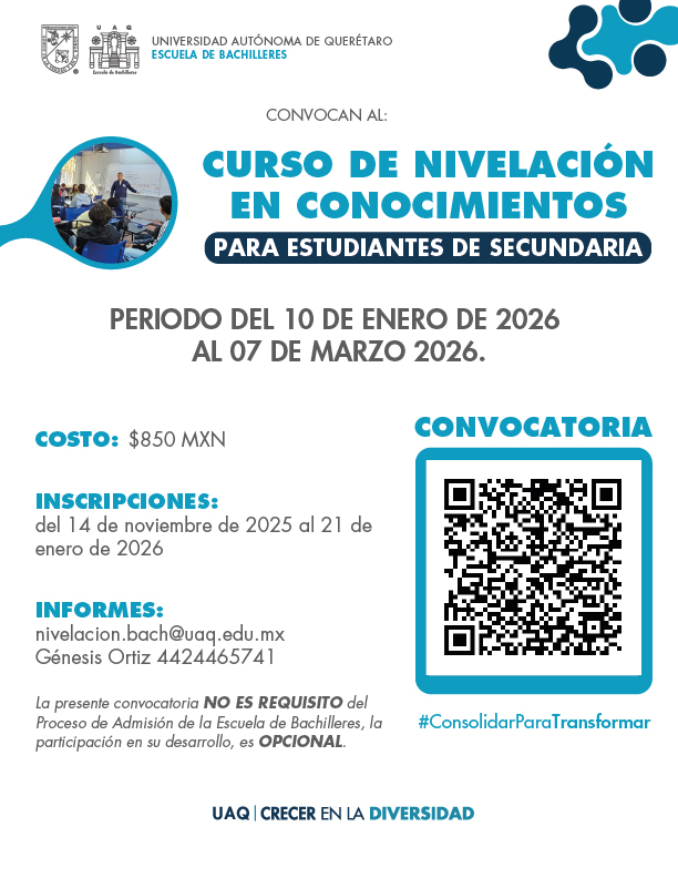 ¡Bienvenido a la página de la Escuela de Bachilleres de la Universidad Autónoma de Querétaro! Aquí comienza una de las etapas más emocionantes de tu vida, llena de nuevos retos y oportunidades. En este sitio, encontrarás todo lo que necesitas para formar parte de nuestra comunidad, desde información detallada sobre nuestra oferta académica hasta las fechas clave de convocatorias y los eventos más importantes.